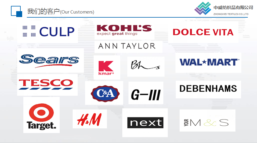 中威紡織主要經(jīng)營(yíng)麂皮類家紡及各類服裝面里料,并可根據(jù)客戶要求研發(fā)、生產(chǎn)及深加工各類面料。公司產(chǎn)品遠(yuǎn)銷美國(guó)、墨西哥、南美、歐洲等世界各地。公司自成立以來,憑著優(yōu)良的品質(zhì)、合理的價(jià)格以及完善的服務(wù),贏得了國(guó)內(nèi)外客戶的信賴。目前公司已與世界眾多大品牌建立了良好的業(yè)務(wù)往來。